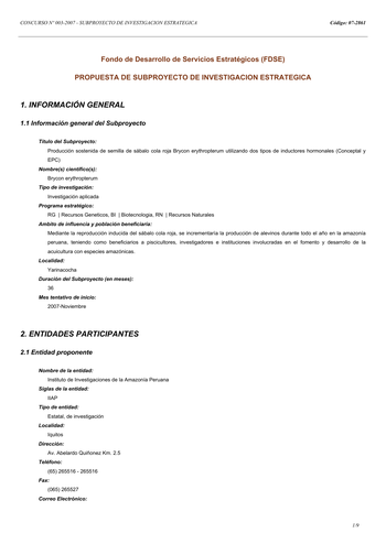 Mediante la reproducción inducida del sábalo cola roja, se incrementaría la producción de alevinos durante todo el año en la amazonía peruana, teniendo como beneficiarios a piscicultores, investigadores e instituciones involucradas en el fomento y desarrollo de la acuicultura con especies amazónicas.