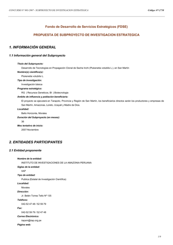 Actualmente se viene promoviendo el cultivo de sacha inchi con semilla botánica no seleccionada poniendo en riesgo la sostenibilidad del cultivo. Se han iniciado trabajos de obtención de líneas mejoradas mediante polinización controlada que dan mayor base para la selección de material genético. Sin embargo, para complementar y acelerar el proceso de selección y multiplicación de material selecto, es necesario desarrollar tecnología de propagación clonal. En la actualidad en el Perú existen estudios aislados y discontinuos sobre propagación vegetativa in vitro en sacha inchi que necesitan ser finalizados y consolidados para su aplicación en campo. Así mismo no se conocen experiencias de propagación por injerto y por estacas por lo que es fundamental el desarrollo de estos estudios. Este subproyecto se concentrará en la obtención de protocolos de propagación vegetativa mediante injerto, estaca e in vitro, lo que permitirá la multiplicación masiva de semilla selecta.