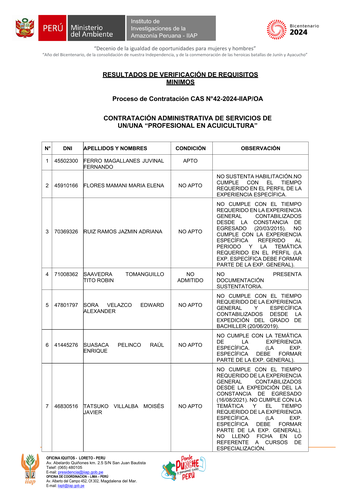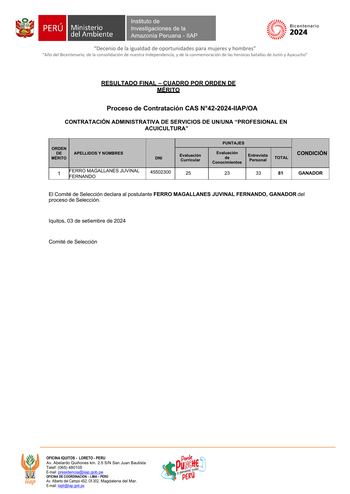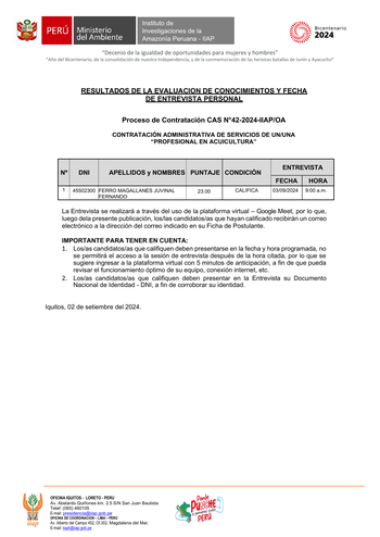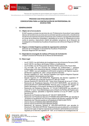 PROCESO CAS Nº 42-2024-IIAP(PRIMERA CONVOCATORIA)