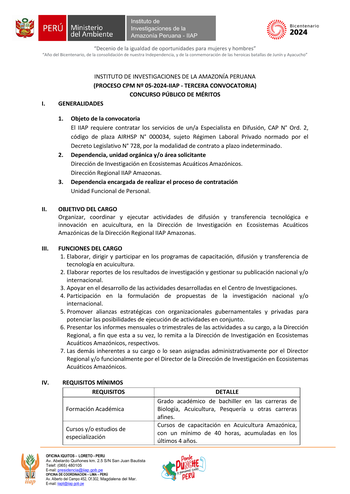 PROCESO CPM Nº 05-2024-IIAP(TERCERA CONVOCATORIA)TÉRMINOS DE REFERENCIA