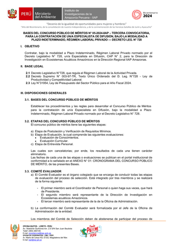 PROCESO CPM Nº 05-2024-IIAP(TERCERA CONVOCATORIA)BASES